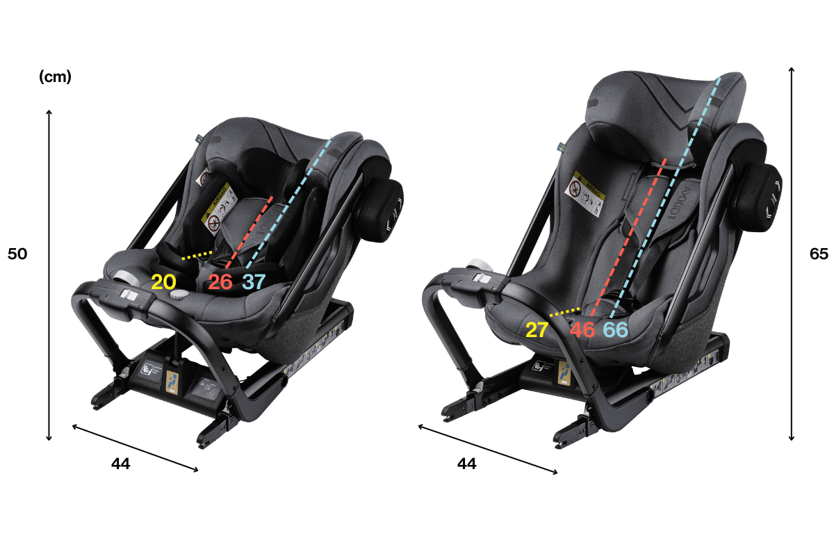 La silla de seguridad que ofrece más espacio para las piernas – la silla ONE de Axkid es espaciosa y su asiento ajustable proporciona más espacio para las piernas y un fácil acceso para el niño.