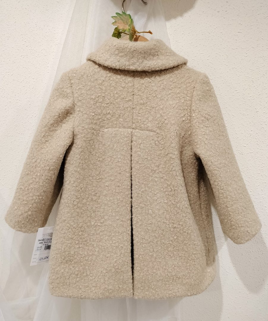 Abrigo niña de tejido de baguilla color tostado muy abrigadito y forrado en polar beige.