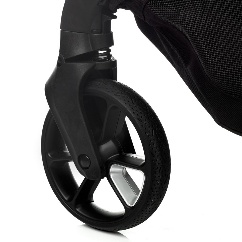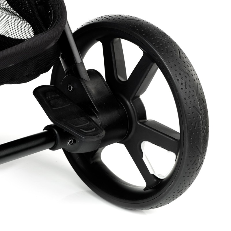 • Grandes ruedas extraíbles. Diámetro ruedas 16,50  y 24 cm de diámetro. Ruedas delanteras bloqueables.