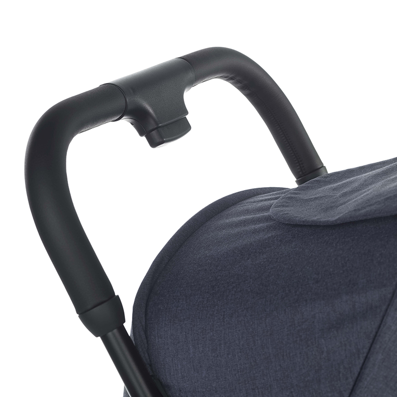 • Manillar  y protector delantero acolchado con acabados de polipiel. El protector es  extraíble y articulable.
