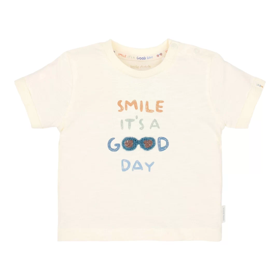 Camiseta de manga corta, color beige con dibujo