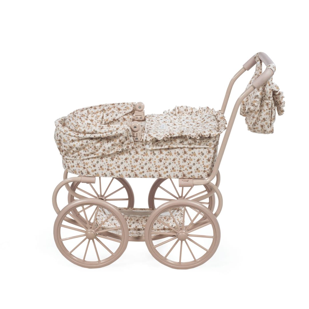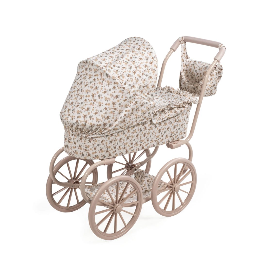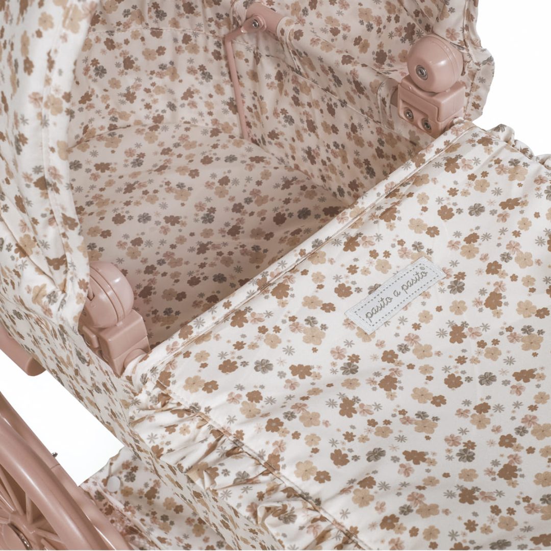Cochecito para sacar a pasear a sus muñecas. Con tejido de estampado multicolor.