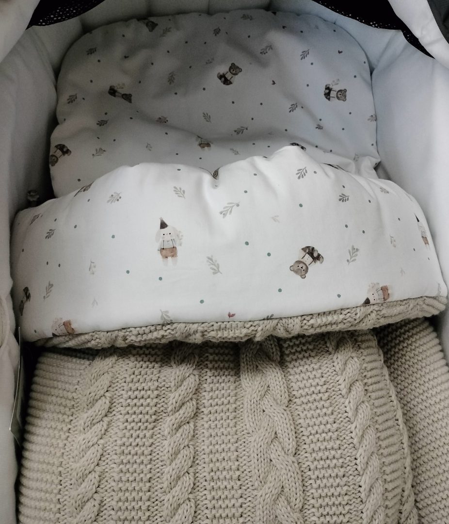 Saco de capazo universal combina de forma muy actual tejido de punto y algodón estampado con ositos.