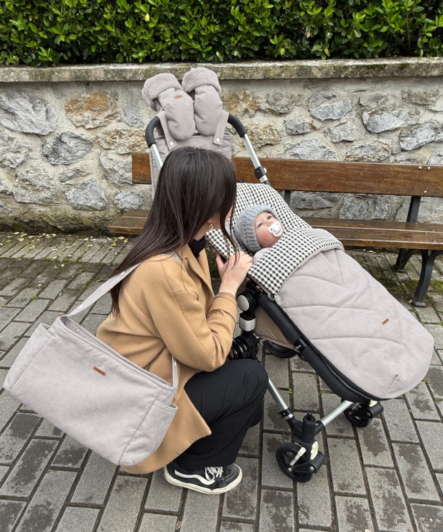 Tejido interior de confortable tejido de cuadritos vichy y exterior de tejido camil de color piedra. Es repelente al agua y aislante del frío y viento.